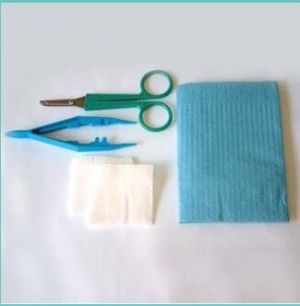 Contine: pensa, foarfeca cu lama ascutita, foarfeca boanta, compresa de tifon.